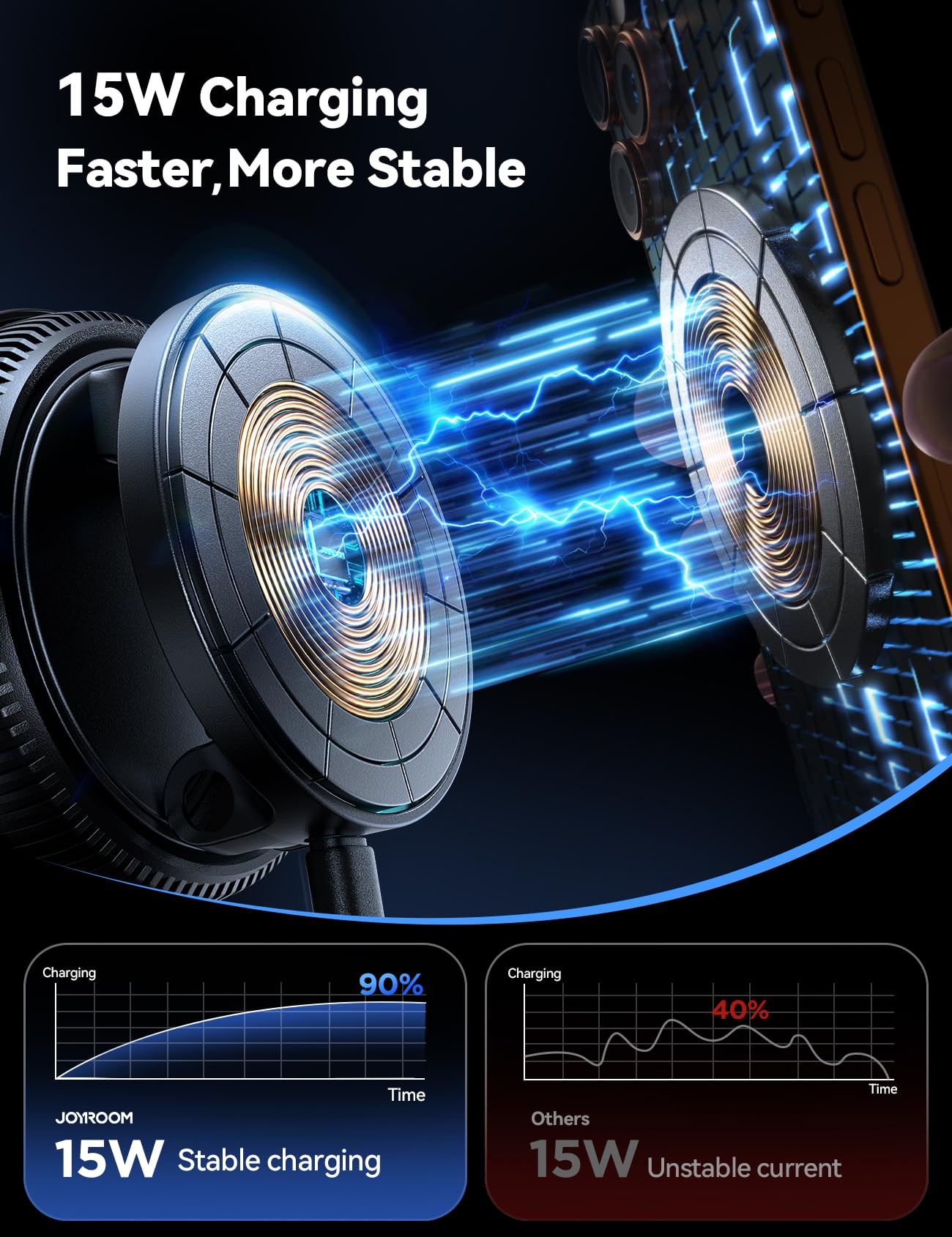 JOYROOM 15W Magsafe Car Mount Charger, iPhone Faster Charging Wireless Car Charger, 80+LBS Strong Suction Magnetic Phone Holder for Car, Stable Metal Support Arm for iPhone 17 Pro Max 16 15 14 13